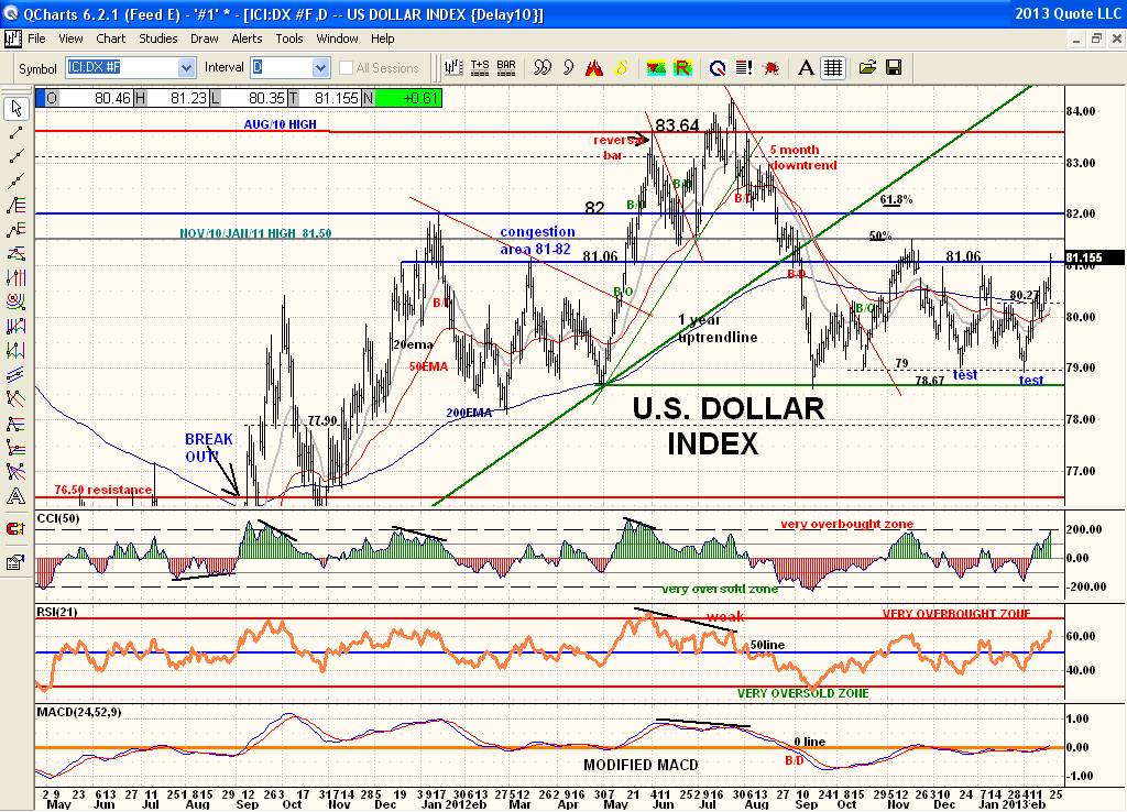 DX has been in a 5 month 3 point channel between 78.67 and 81.50. Price has once again rallied back to the top 'area' of the channel and back into the long term congestion zone resistance between 81 & 82. This is a repeat of what DX did in the winter of 2011 into the spring of 2012. Clearing 82 would be a major accomplishment and have dramatic effects on many markets. Meanwhile resistance is resistance. Perhaps with Japan's dramatic and sudden devaluation of the Yen and other countries now looking to trash their own currencies to compete globally now is the time for DX to shine.